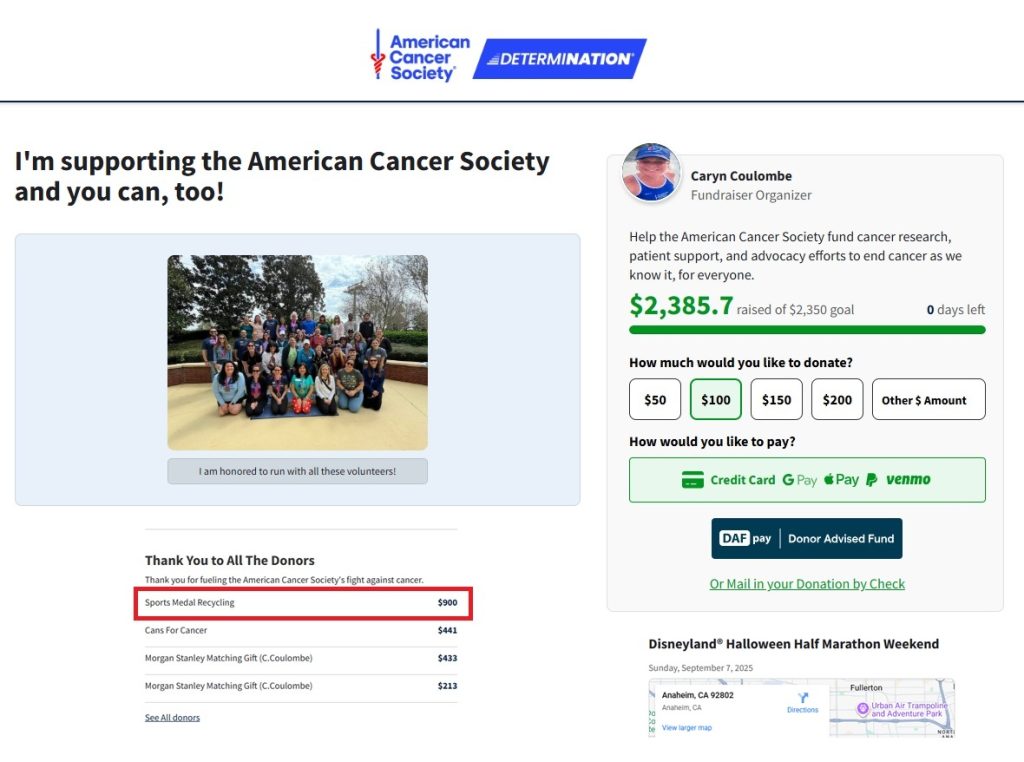 Here are some screenshots from the dozens of financial donations we have made to 501(c)3 non-profit organizations through athlete fundraising web pages. The donations made were to either cover the fundraising minimum of our own team members’ fundraising campaigns, or to help other athletes achieve their fundraising minimums.